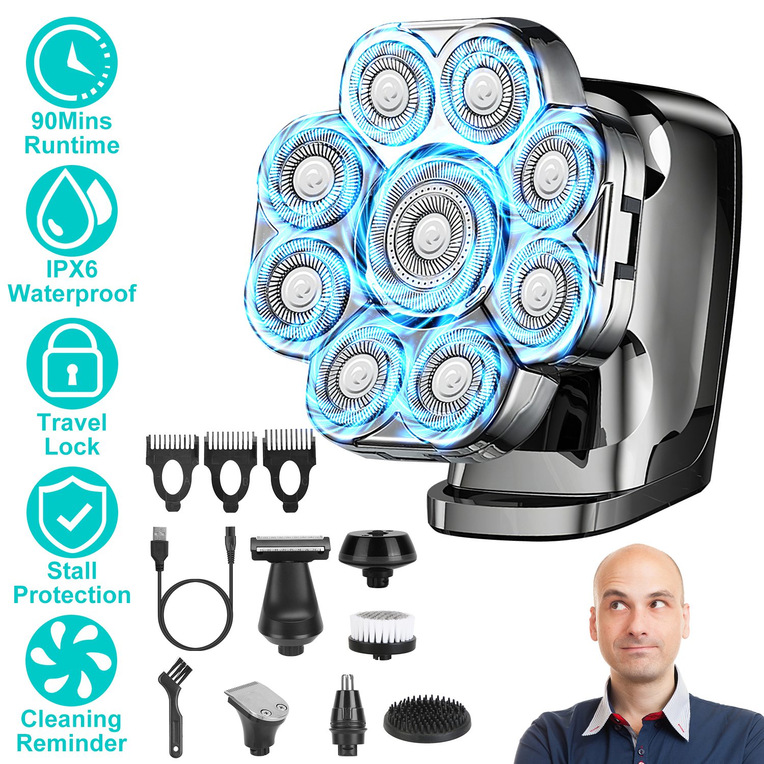 Product Type: 6 In 1 9D Electric Head Shaver